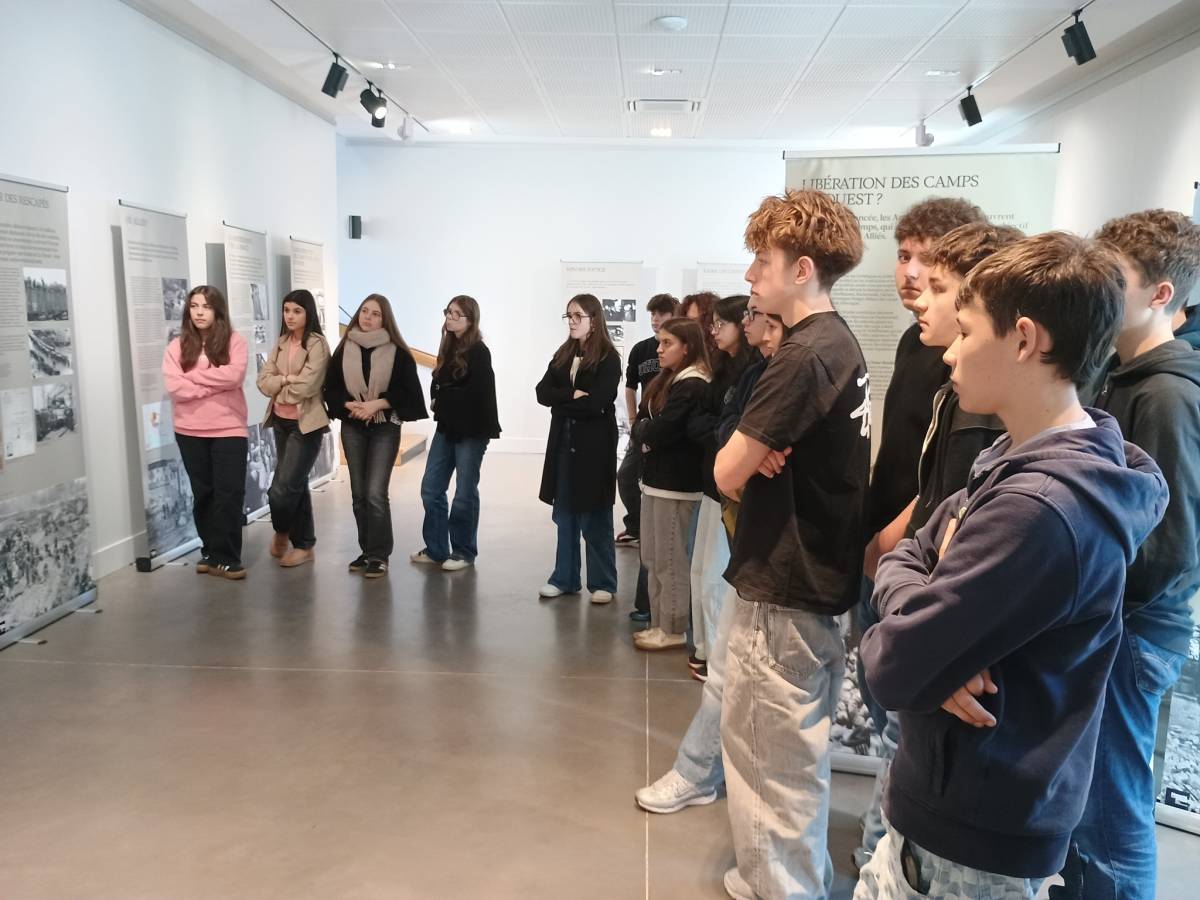 Vingt-trois élèves de 1re, inscrits au Concours national de la Résistance et de la Déportation, accompagnaient également le groupe. Dans le cadre de leur préparation au concours, ils ont visité l’exposition temporaire proposée par le Mémorial de la Shoah, consacrée au thème annuel : « La fin de la Shoah et de l’univers concentrationnaire nazi. Survivre, témoigner, juger ». Cette visite leur a permis d’approfondir leur réflexion sur les enjeux de la mémoire, du témoignage des survivants et de la justice après la guerre.