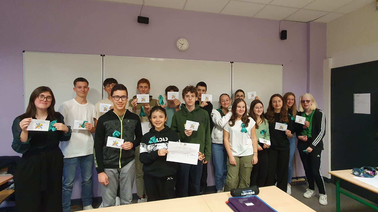 Les élèves, les enseignants et le personnel ont joué le jeu en s’habillant en vert. Dans chaque classe, un temps a été dédié en début de matinée pour débattre sur le thème de la différence et la définition du HARCÈLEMENT. Au collège, les 6° accompagnés de leurs parrains de 3° ont réalisé des affiches qui seront accrochées dans l’établissement. Enfin, chaque élève s’est vu remettre un ruban vert en symbole de la couleur de cette journée.